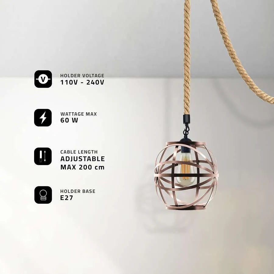 - The pendant features an E27 bulb holder, With a maximum of 60W, Voltage: 110-240V providing flexibility to choose the brightness.