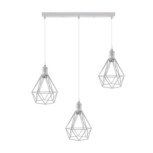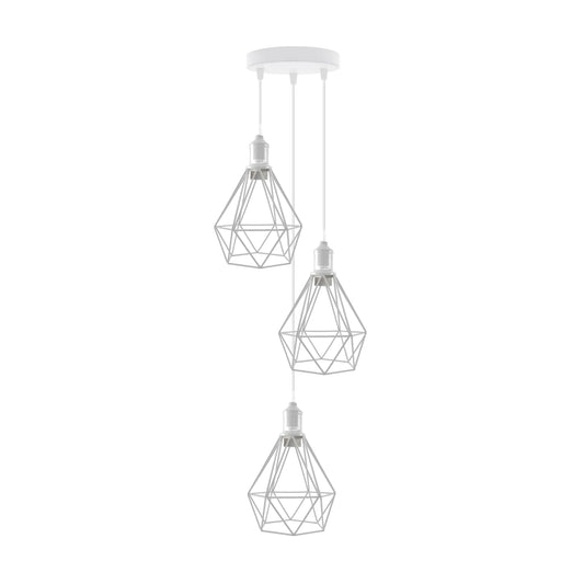 White 3 way diamond wire cage shade pendant lamp fittings -30% discount for pack of 2~5004
