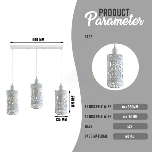 Vintage 3Pack Retro Drum White Cage Hanging Pendant Light ~5018