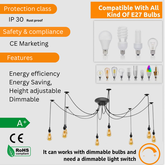 Industrial 8-Way Spider Chandelier | 2m | Free Bulbs | Adjustable ~2554