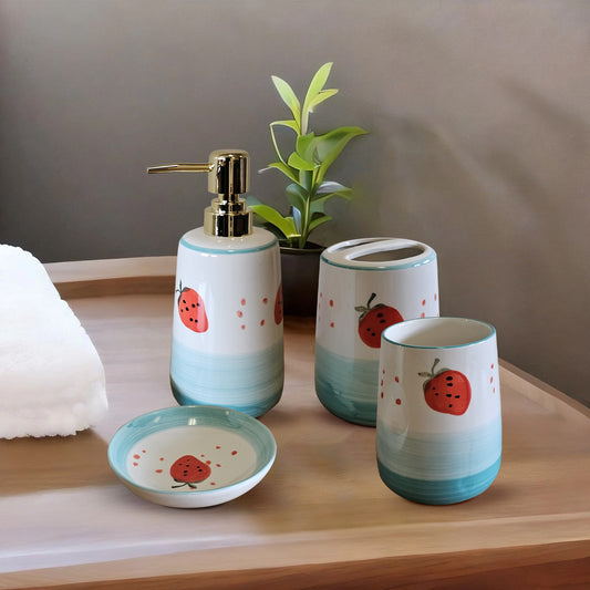 4 Pcs Strawberry Pattern Bathroom Accessory Set Ceramic Bath Set~3703