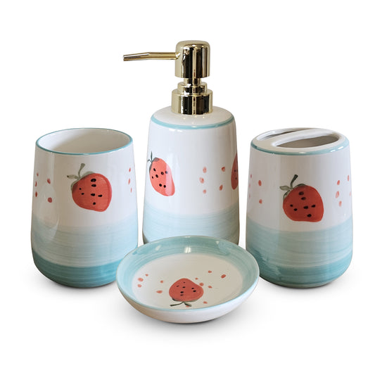 4 Pcs Strawberry Pattern Bathroom Accessory Set Ceramic Bath Set~3703