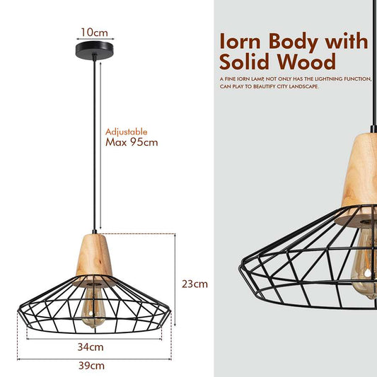 Retro Industrial Black Wire Cage Metal Shade Pendant Lamp ~ 3167