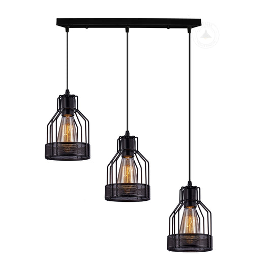 3 Way Industrial Cage Pendant Light Rectangle Light Fitting ~ 3243