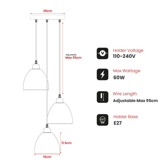 Industrial 3-Head Pendant Light with Adjustable Cables ~3968