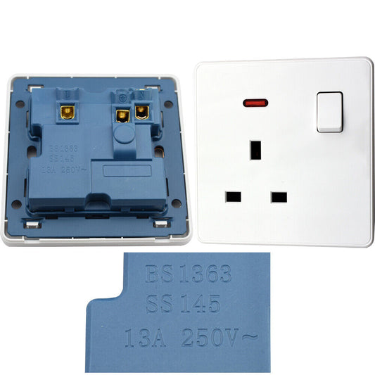 13Amp Single Switched wall plug socket with ON/OFF Switch LED Indicator UK Stock~3856