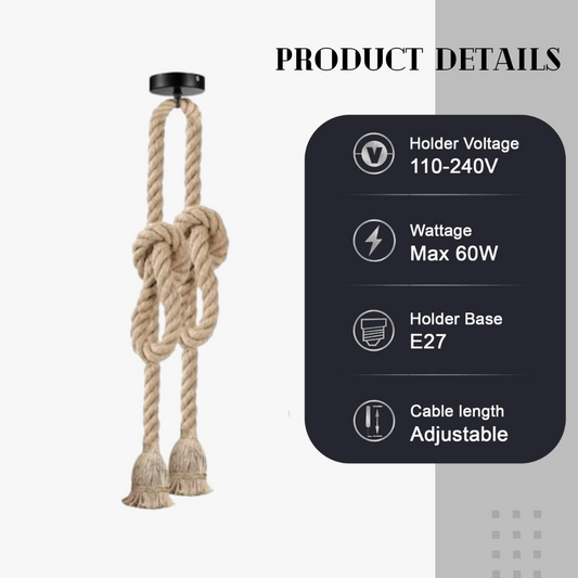 3m Double Head Hemp Rope Vintage Pendant Light~3332