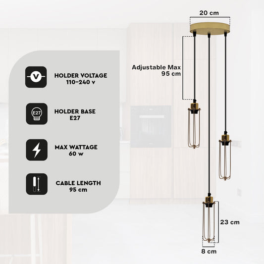 Vintage 3 Way Pendant Hanging Cage Lamp Industrial Cluster Ceiling Light~3859