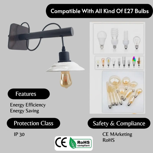 Industrial Wall Sconce with E27 Bulb Holder & Lamp Shades~1336