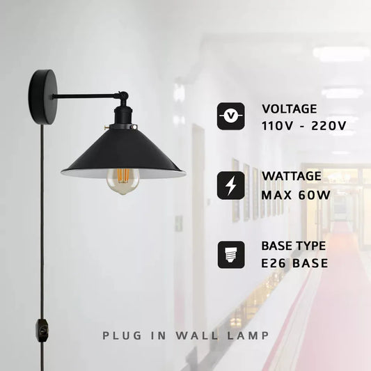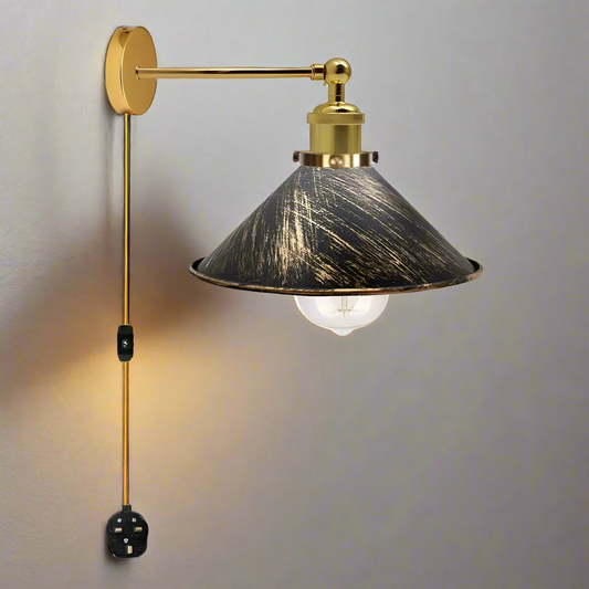 Dimmable Plug-in Wall Light | 2m Vintage Industrial Sconce ~3896
