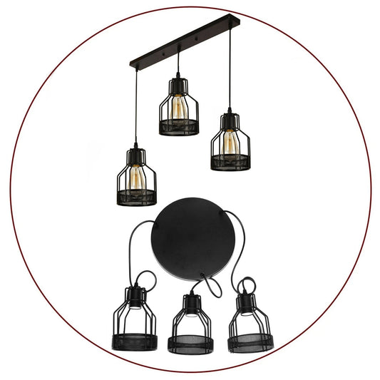 Vintagelite Industrial 3- Head Rust Black Pendant Cluster Light~1705