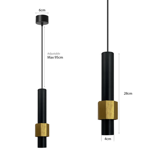 Modern Black & Gold Long Tube Aluminum Ceiling Pendant Cylindrical LED Light ~ 3171
