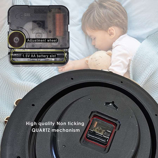 A children's clock is a timepiece designed specifically for kids, frequently with bright colours, amusing designs, and easy-to-read numbers to assist them learn to tell time. These clocks can be analogue or digital, and many have interesting themes like animals, cartoon characters, or educational motifs to keep children interested.