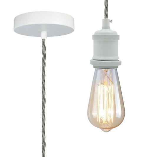 Vintage E27 white Lamp Holder Pendant Light Ceiling Fitting Grey Twisted cable ~2715