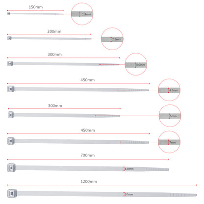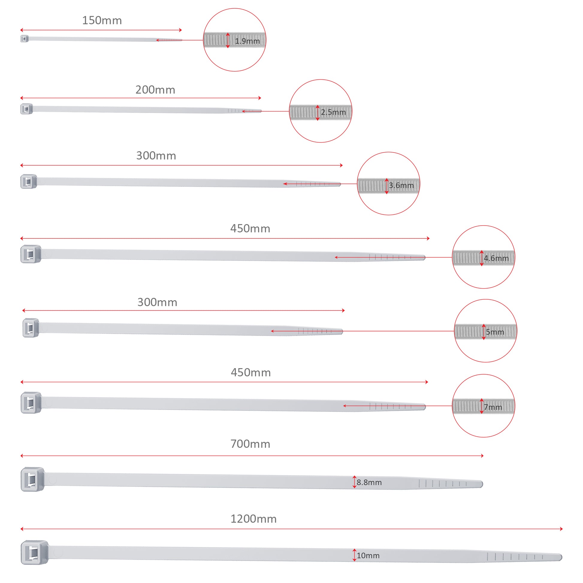 - Each pack of nylon ties comes with 100 pieces and the self-locking design ensures bundle wires are more tightly and ultra-strong secure.