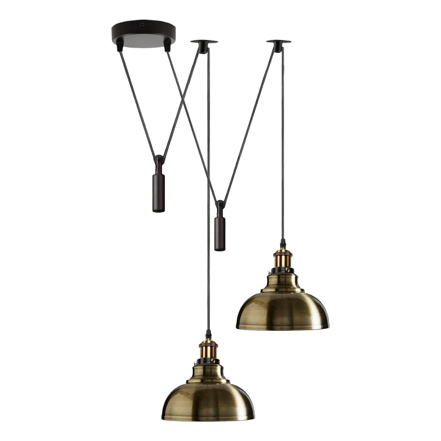| Package Included | - 1 x Ceiling Rose with Fitting Accessories - 2 X E27 Holder Pendant with 195cm Cable (Bulbs are included) - 2 x Lampshade - 2 x Upper Pulley - 2 x Lower Pulley Wheel |