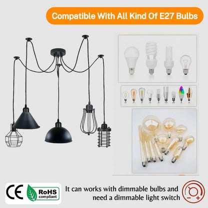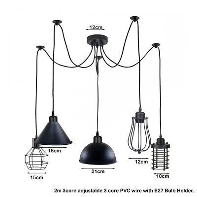 | Package Included | - 1 x Pendant Lamp Base (120mm x 25mm) - 3 / 5 x Light Holder with 200 cm Cable (Bulbs are not included) - 3 / 5 x Light Shade - 3 / 5 x Upper Pulley - 3 / 5 x Lower Pulley Pendant - 3 / 5 x Assemble Parts |