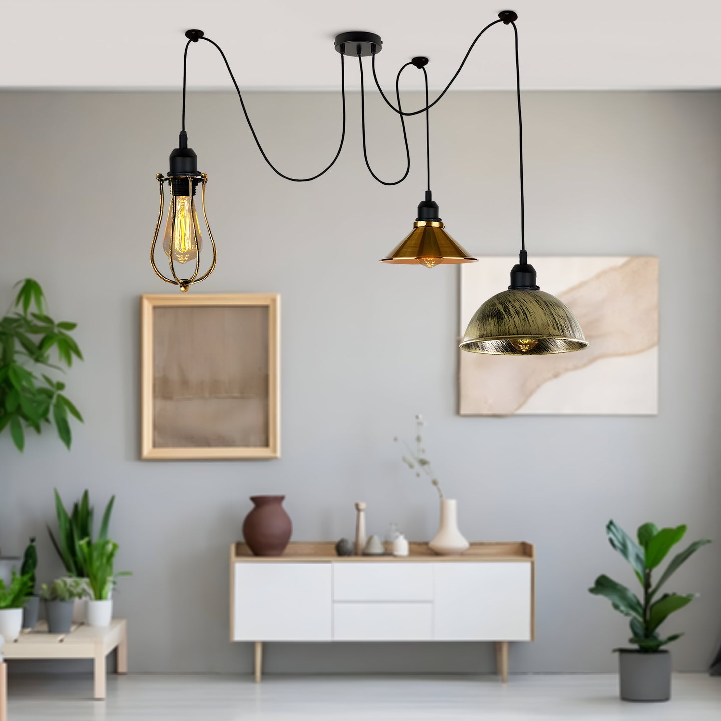 - This Spider light has different shades on each head. It will give a variety of lighting experiences to your place.