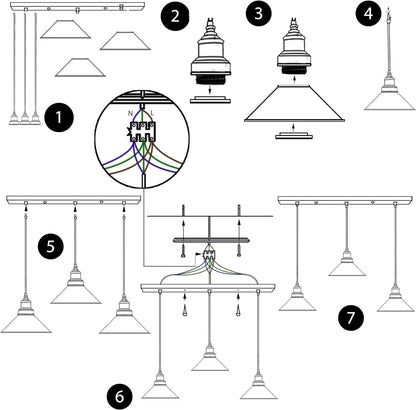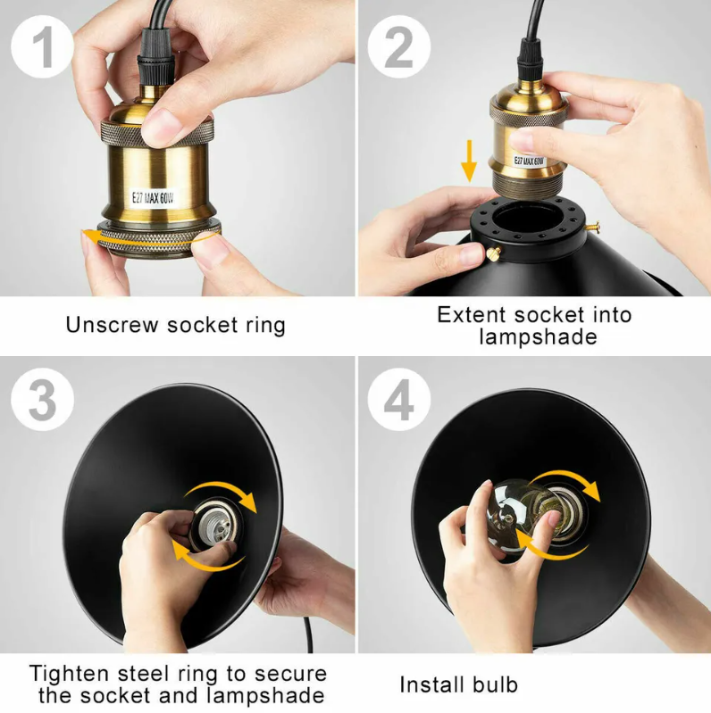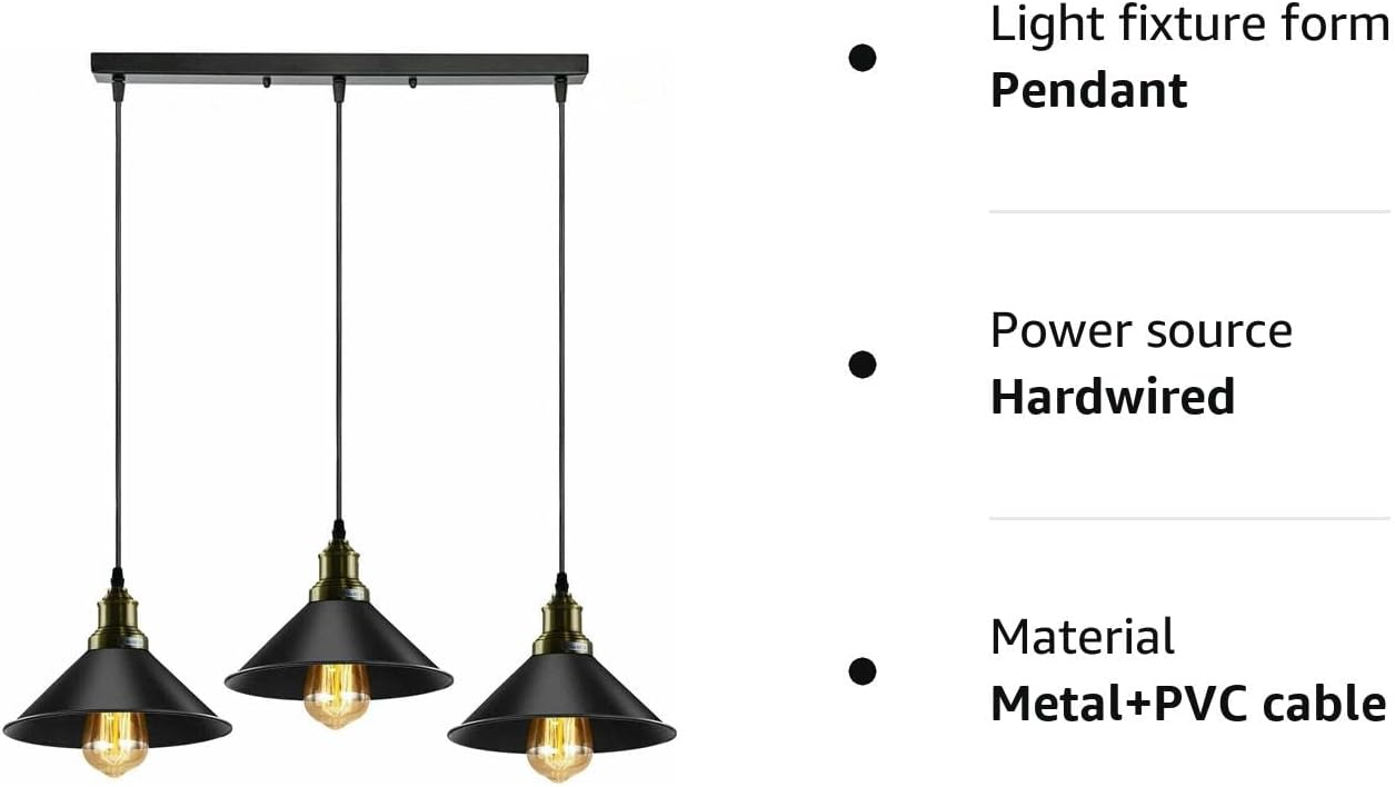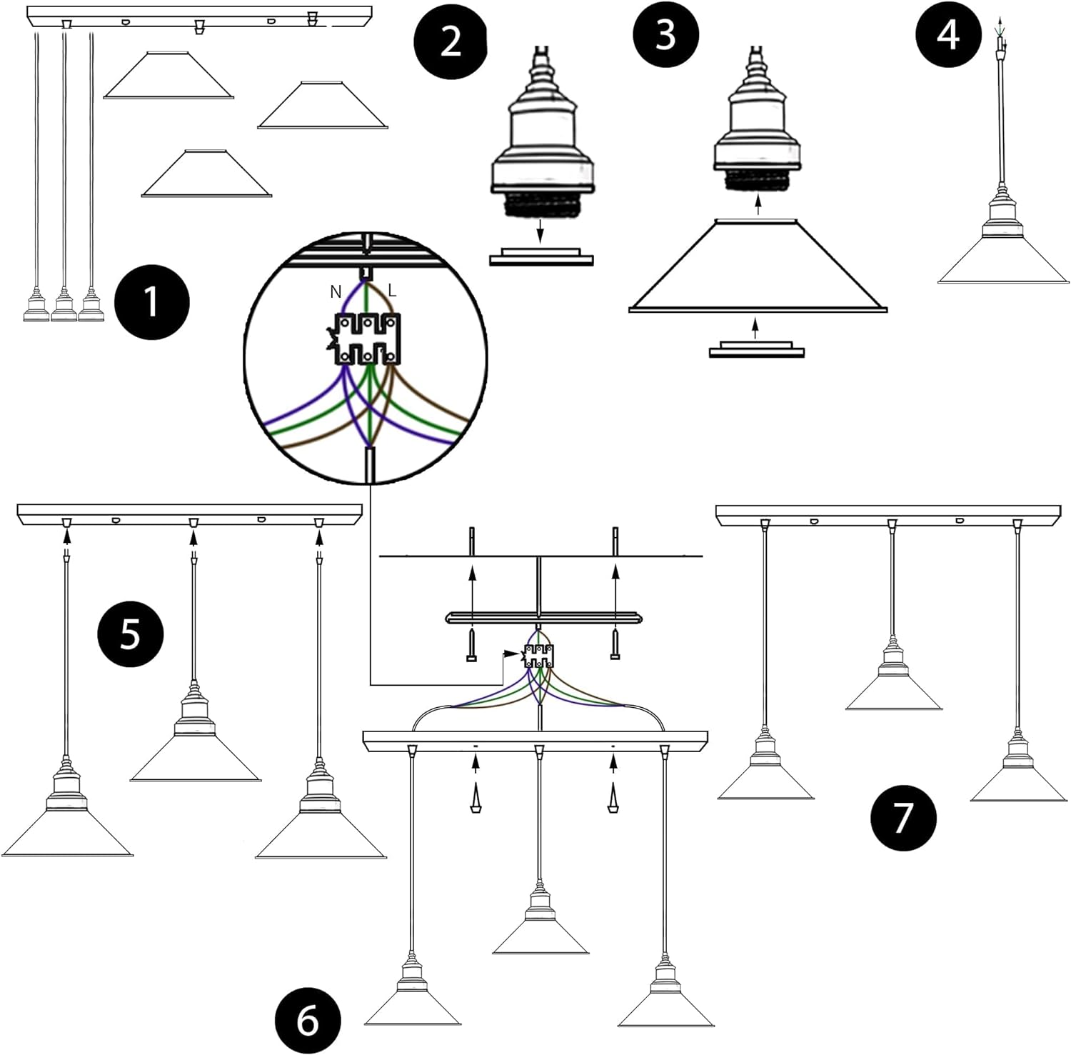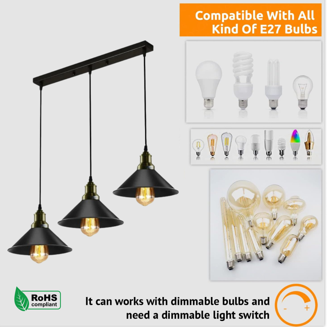 1 x Pendant Lamp Base (50cm) 3 x E27 Light Holder with 95cm Cable(Bulb is Optional) 3 x Light Shade 1 x Assemble Parts |