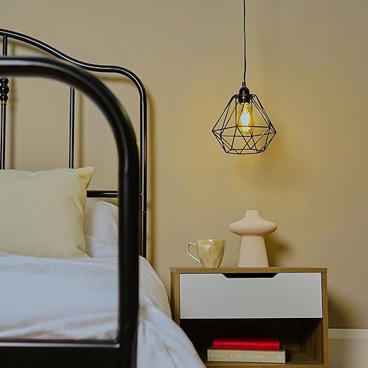 This contemporary pendant features a metal wire design frame and comes in a range of colour options. Easy to fit your standard ceiling light socket - no wiring required.