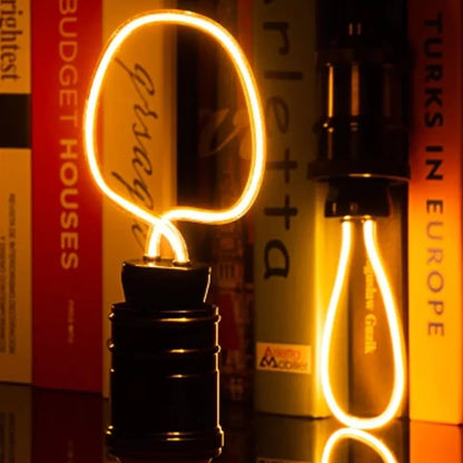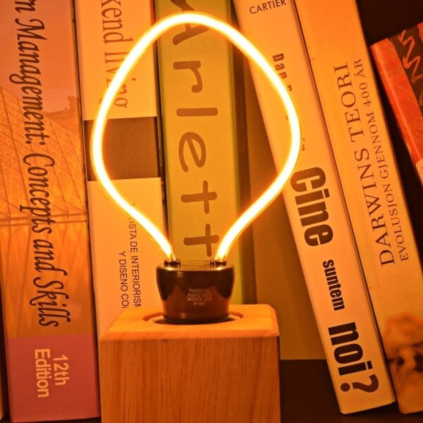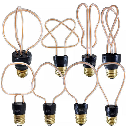 Designer light bulb with a curvy filament very similar in various shapes to the bulbs.