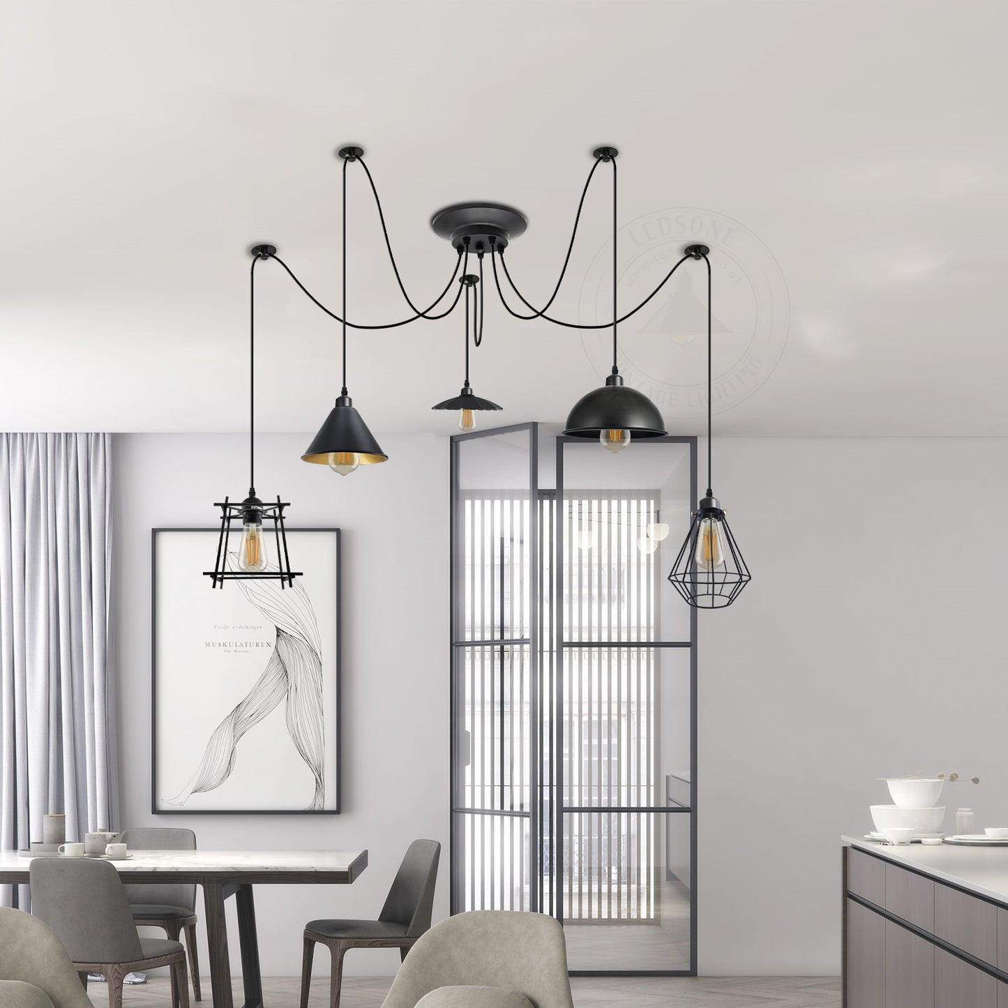 - Creative and fashionable Industrial Vintage 5 way Pendant Hanging Light Fixture with metal cage, as well as perfect interior decoration