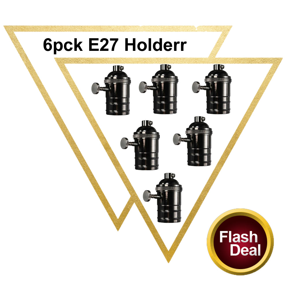 ✔ 6 x Black Colour E27 Switch Bulb holders only.
