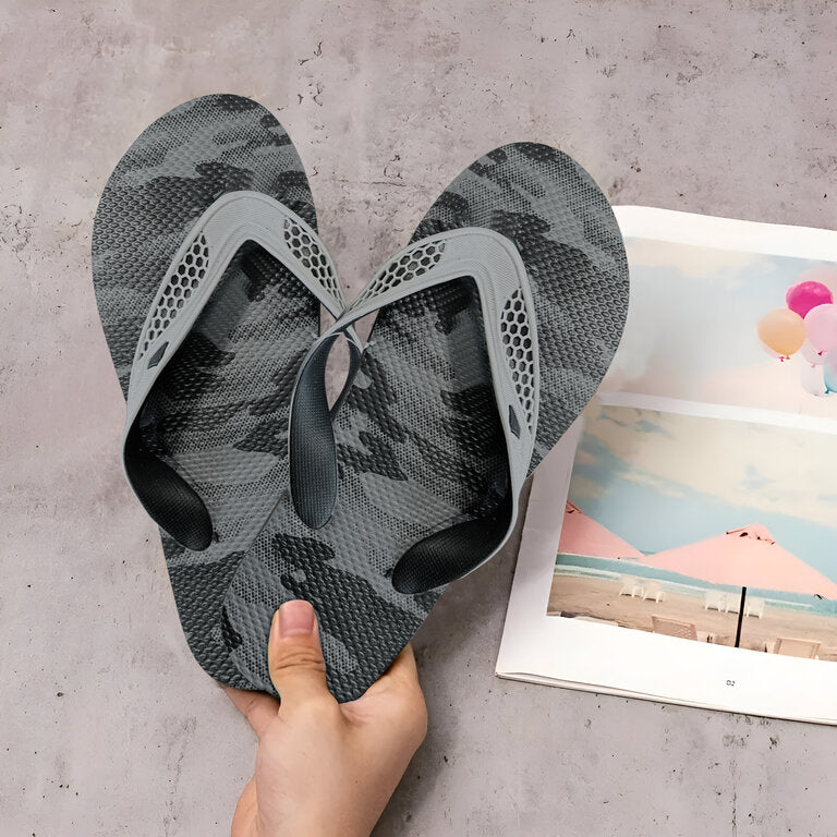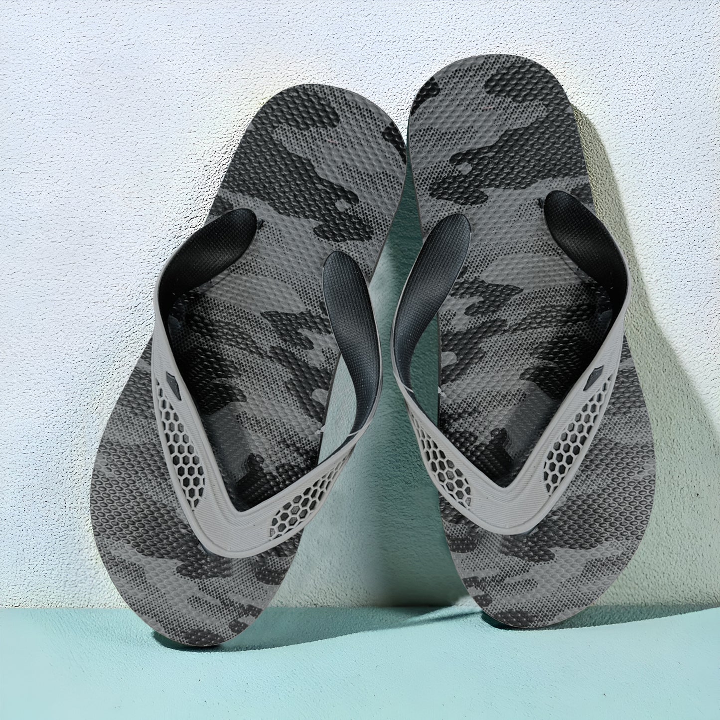 - The flip-flop slippers come with a colorful palette and camouflage design, offering style with a sturdy thong attachment.