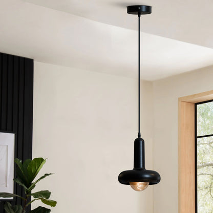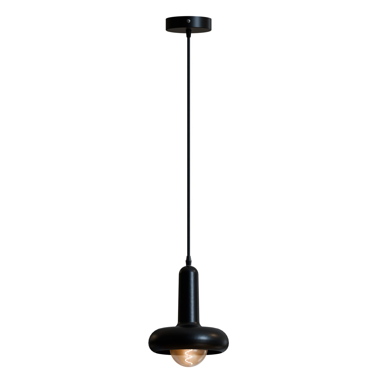 - This modern black pendant light features a unique rounded, mushroom-shaped shade with a smooth matte finish.