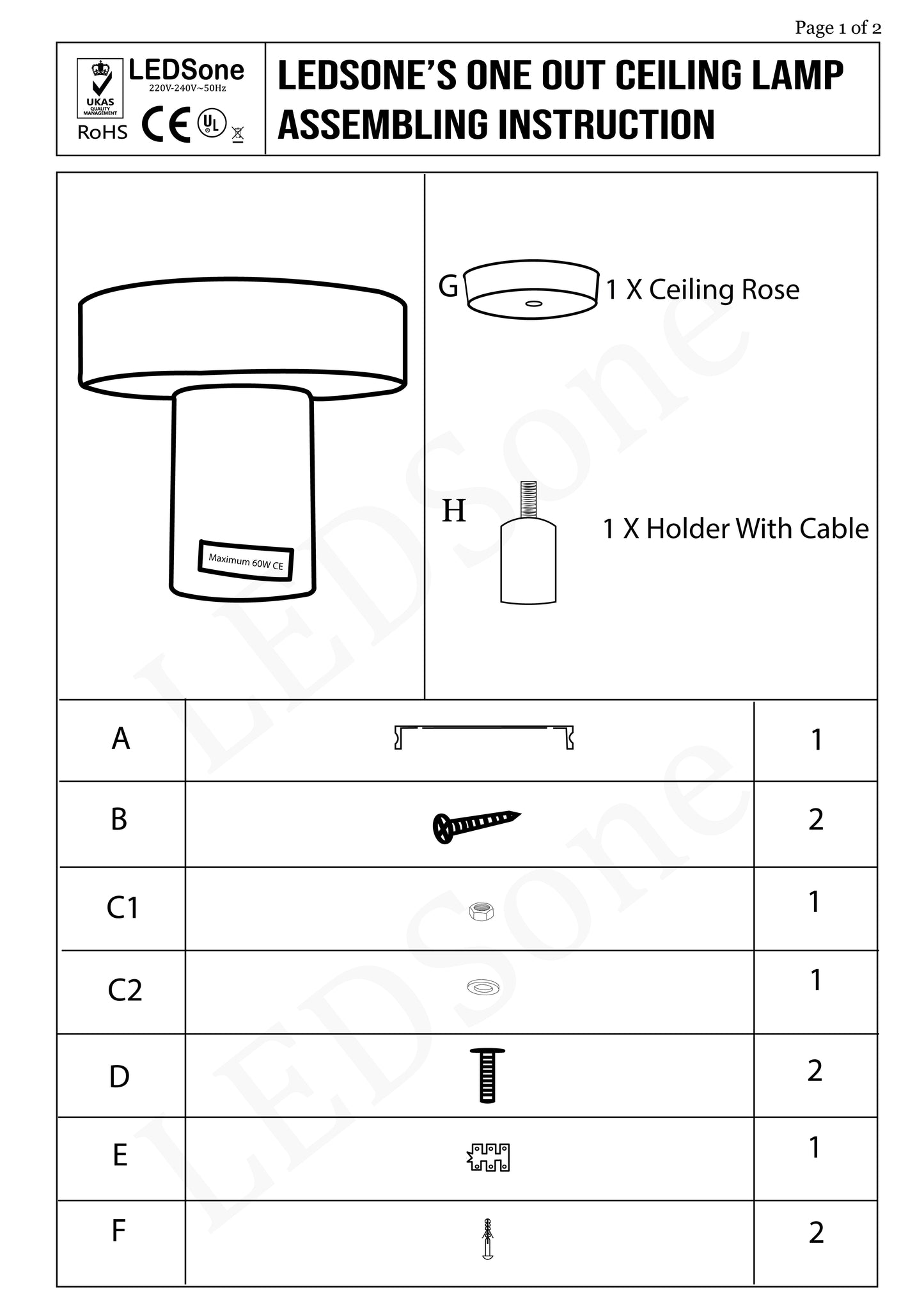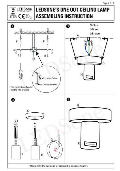 | Package Included | 1*E27 Ceiling Light only. (1 X Ceiling Lamp Base (100mm x 25mm),1 X Light Holder.The bulb is Not Included) |