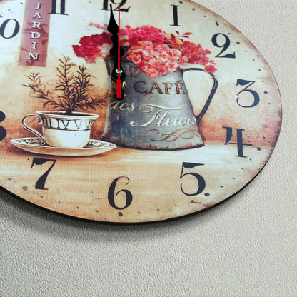 - Item Type: Cafe Cup and Flower Shabby Chic Wall Clock