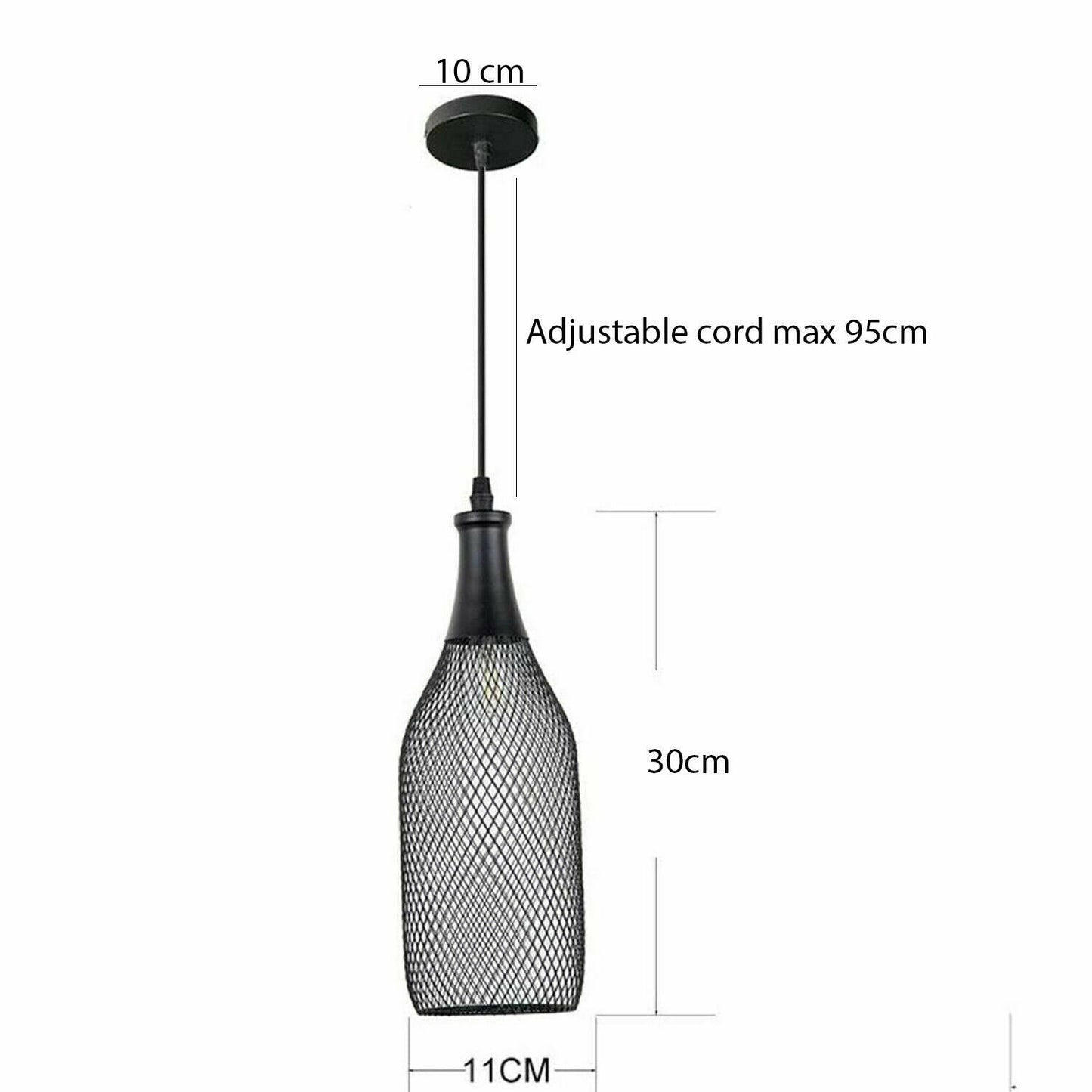 - Voltage: 220V; Power: max 60W; E27 Base Measure 11cm in shade diameter and 30cm Height, 10cm in Flat ceiling rose diameter, adjustable 1m ceiling cable.