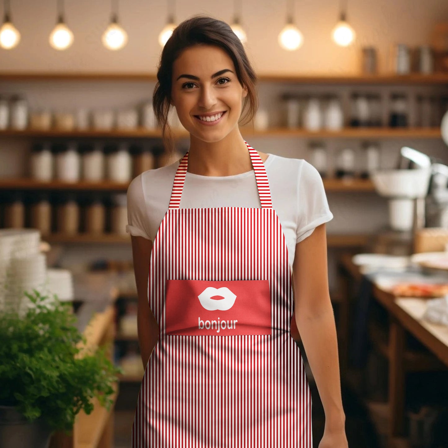 - It is designed with a spacious single pocket in the middle of the apron to hold pens, memos, cellphones, or little cooking items.