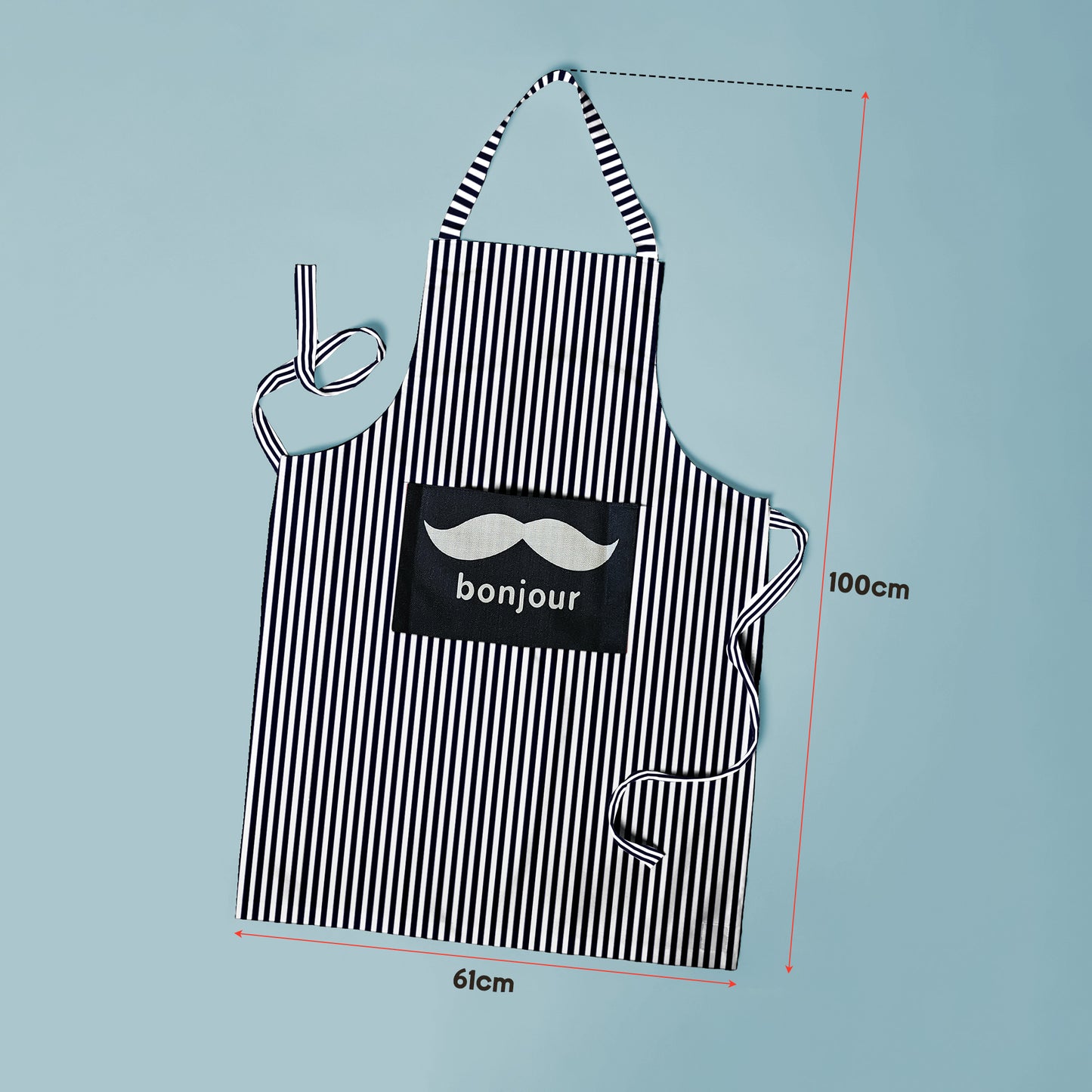 - ★ The apron includes a necktie and extra-long waist straps that are easily adjustable to accommodate most sizes.