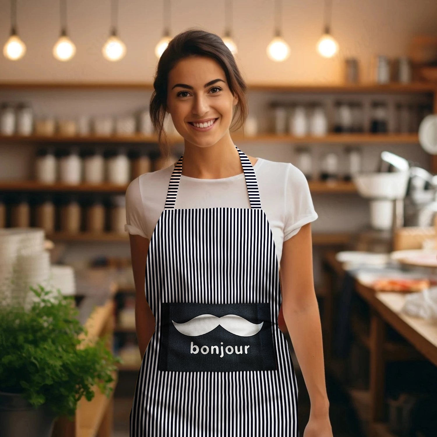 - ★ It is designed with a spacious single pocket in the middle of the apron to hold pens, memos, cellphones, or little cooking items.