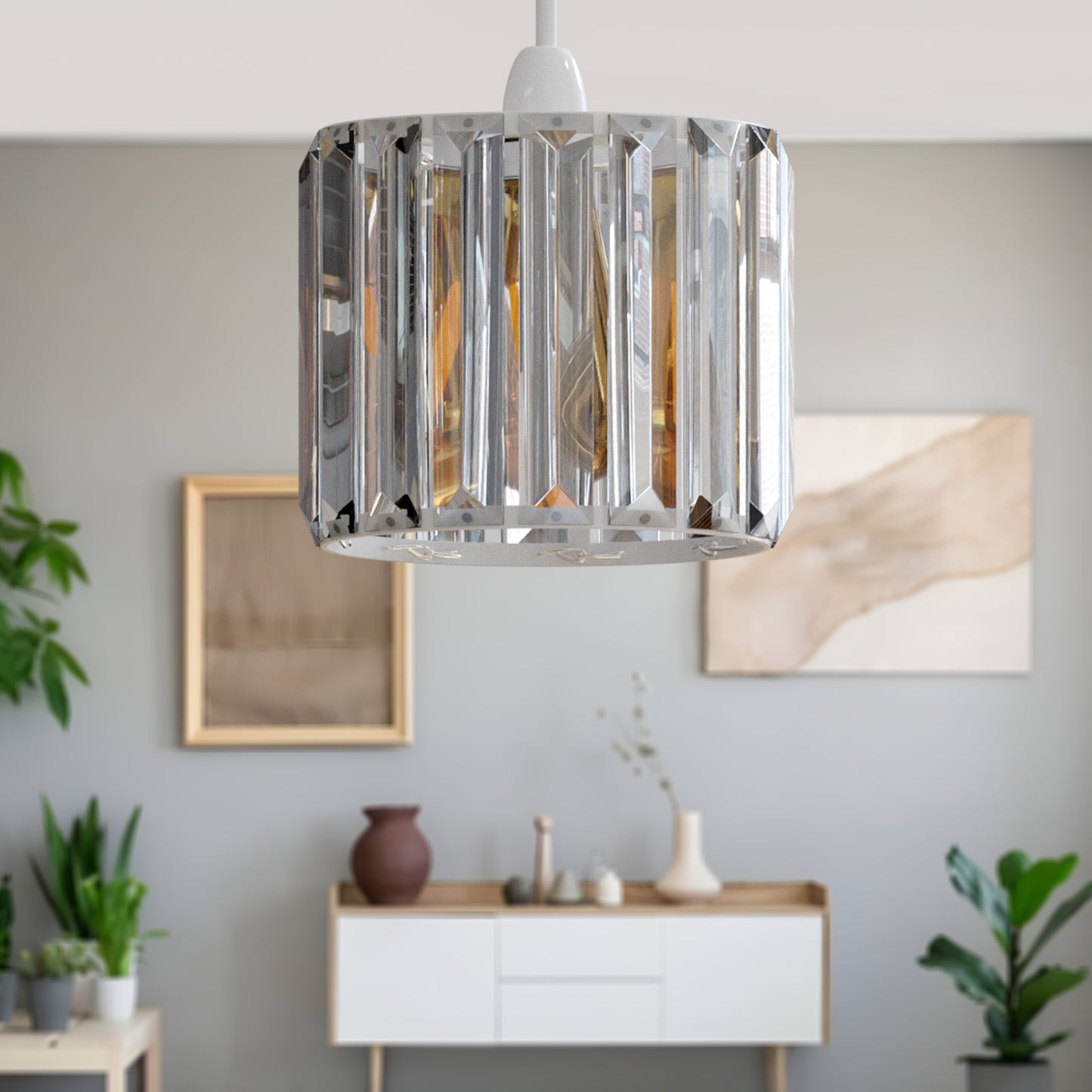 - The features a modern design with crystal glass combined with a chrome layer, creating reflected light and creating a shadow luxury in any space.
