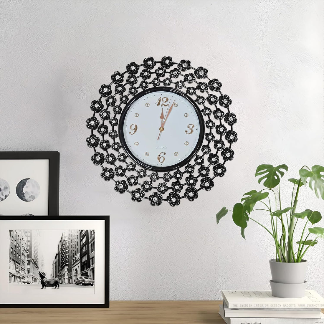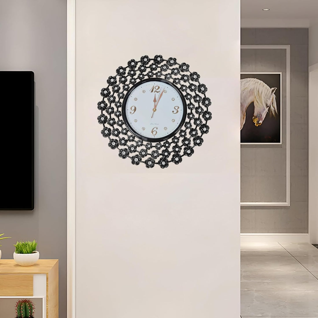 - Intricate patterns on the clock materials with a black art finish over the metal clock.