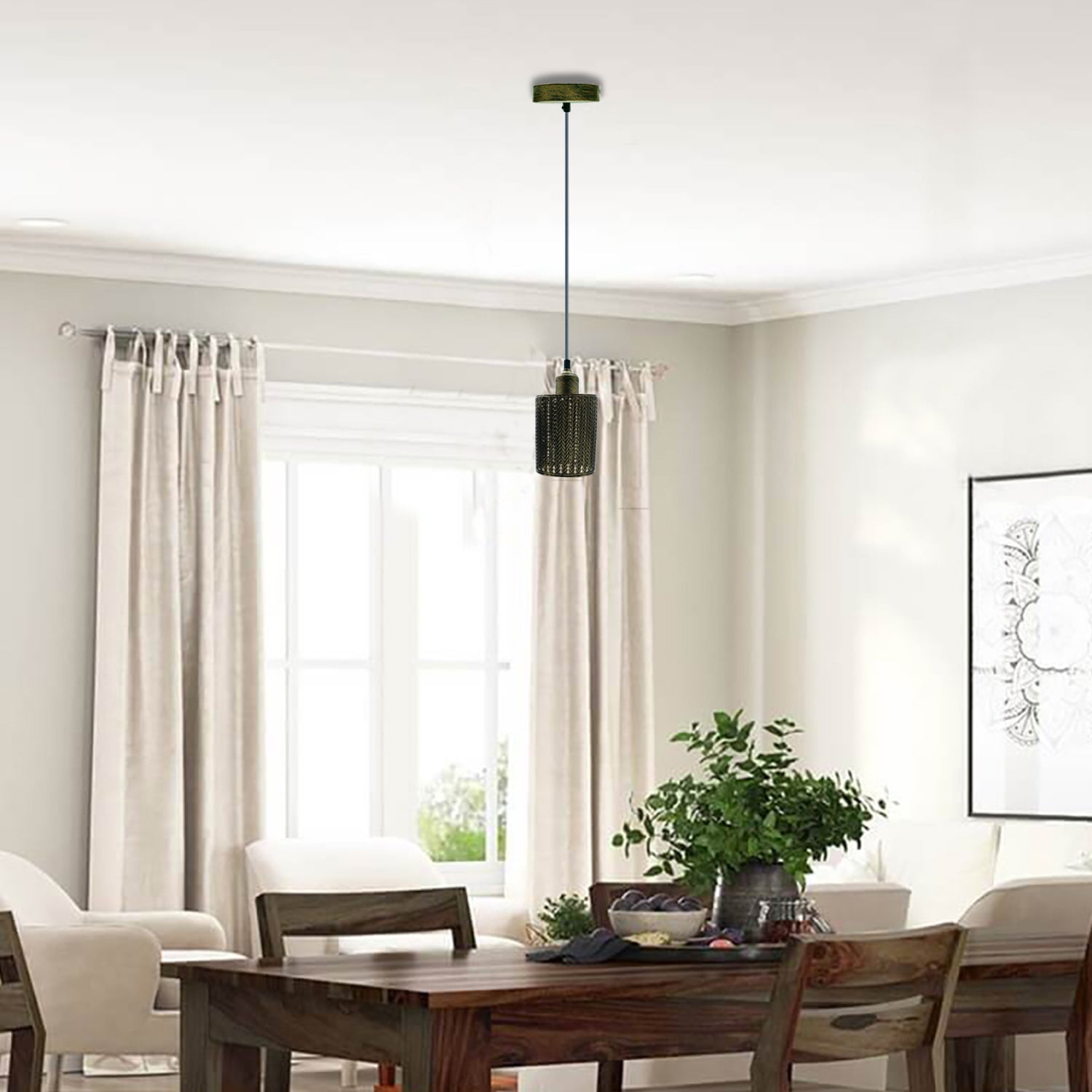 - A complete set including pendant, metal shade, ceiling canopy, and installation hardware.