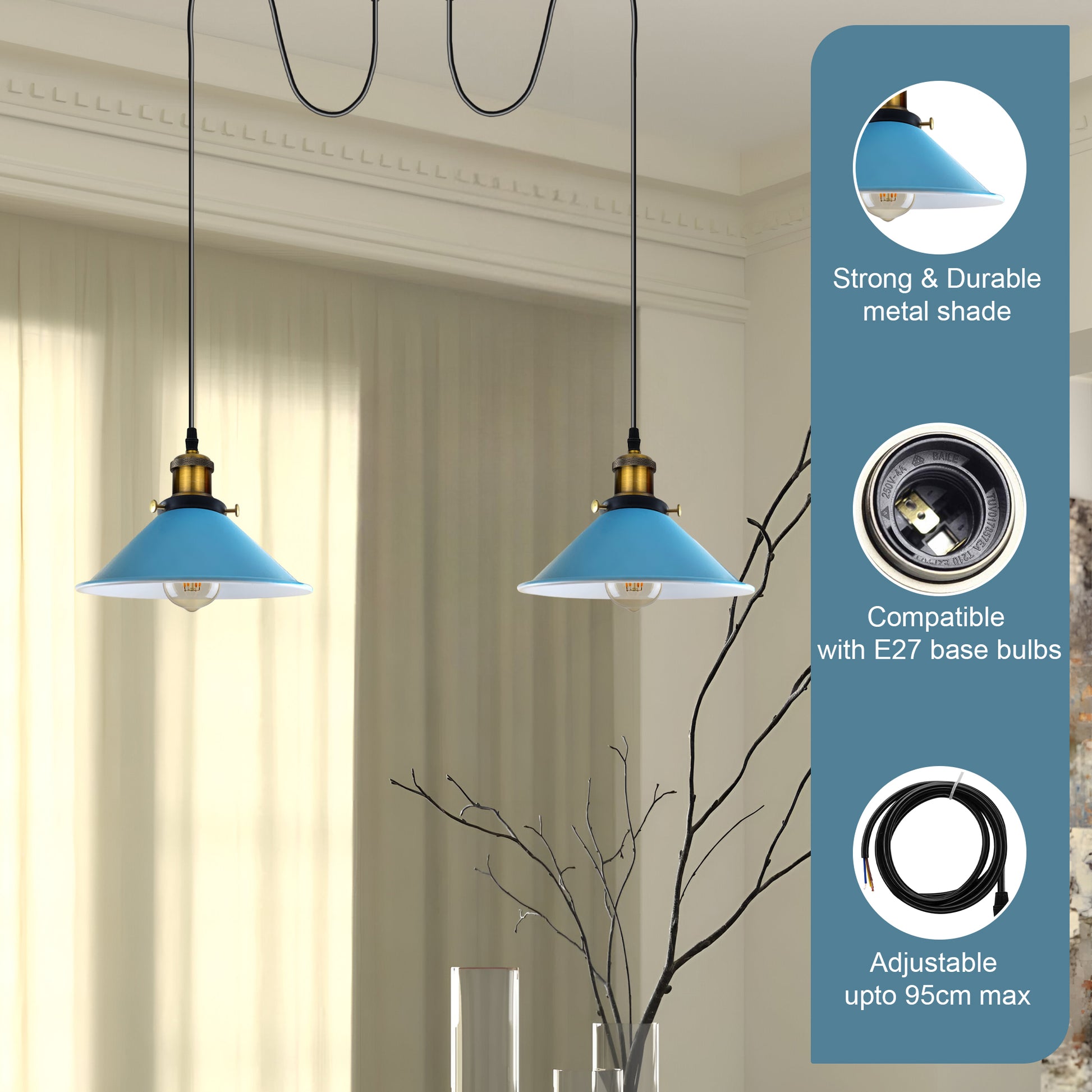 | Features | -Height adjustable, -Dimmable (if used dimmable switch) -Energy efficient -Energy saving |