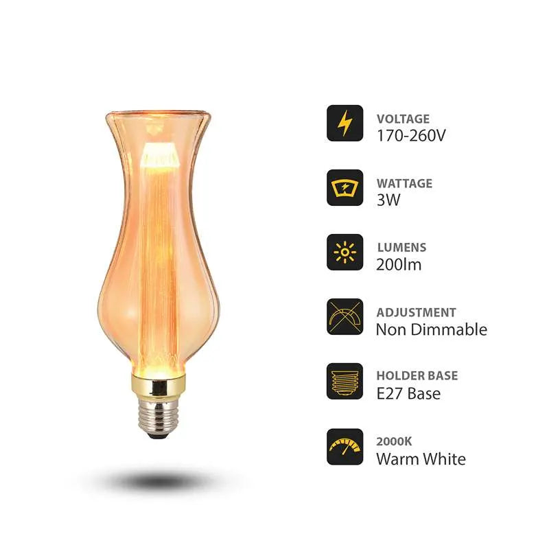 - Standard E27 base size for use in most household fixtures; Power: 3W; Voltage: 170-260V