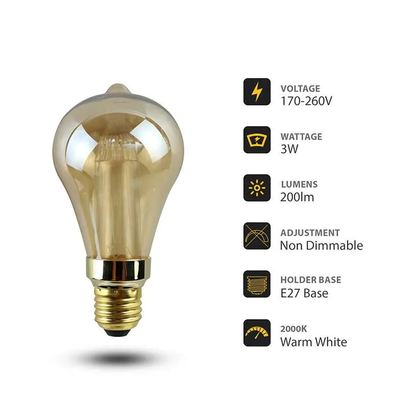 - Standard E27 base size for use in most household fixtures; Power: 3W; Voltage: 170-260V