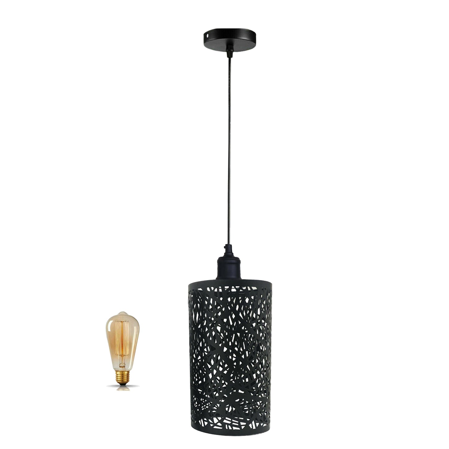 - A complete set including pendant, metal shade, ceiling canopy, and installation hardware.