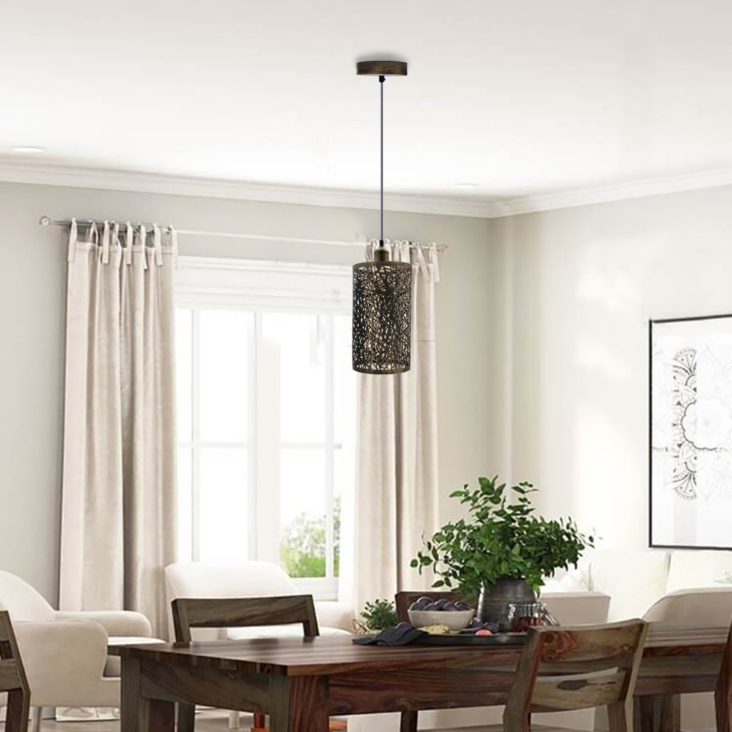 - A complete set including pendant, metal shade, ceiling canopy, and installation hardware.