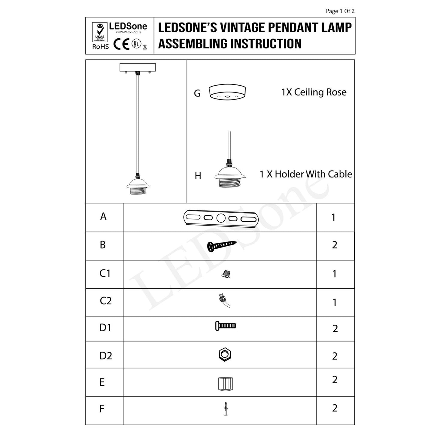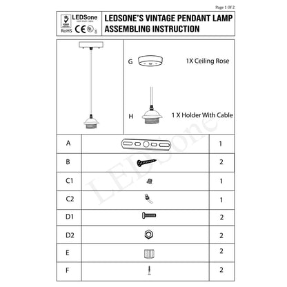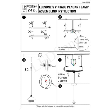 | Package Included | 1 X Pendant Lamp Base 1 X Light Holder(Not included bulb / Lampshades) 1 X Assemble Parts |