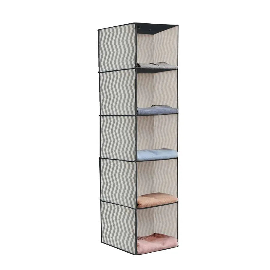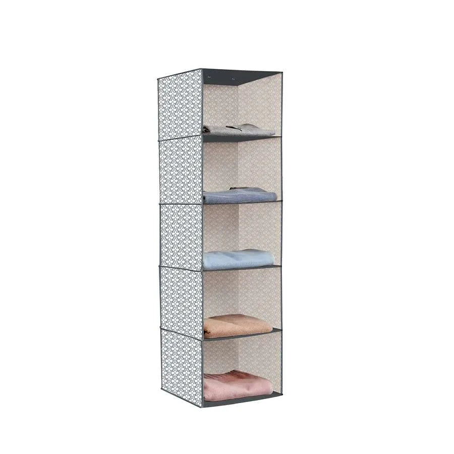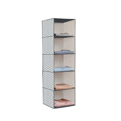 - This hanging organiser is perfect for organising shirts, sweaters, or other accessories on five roomy shelves.