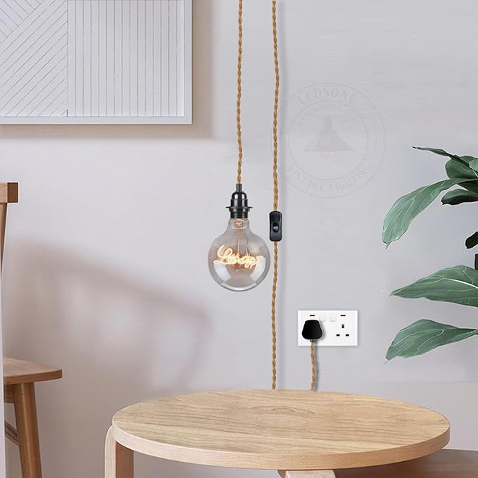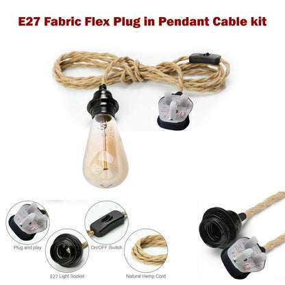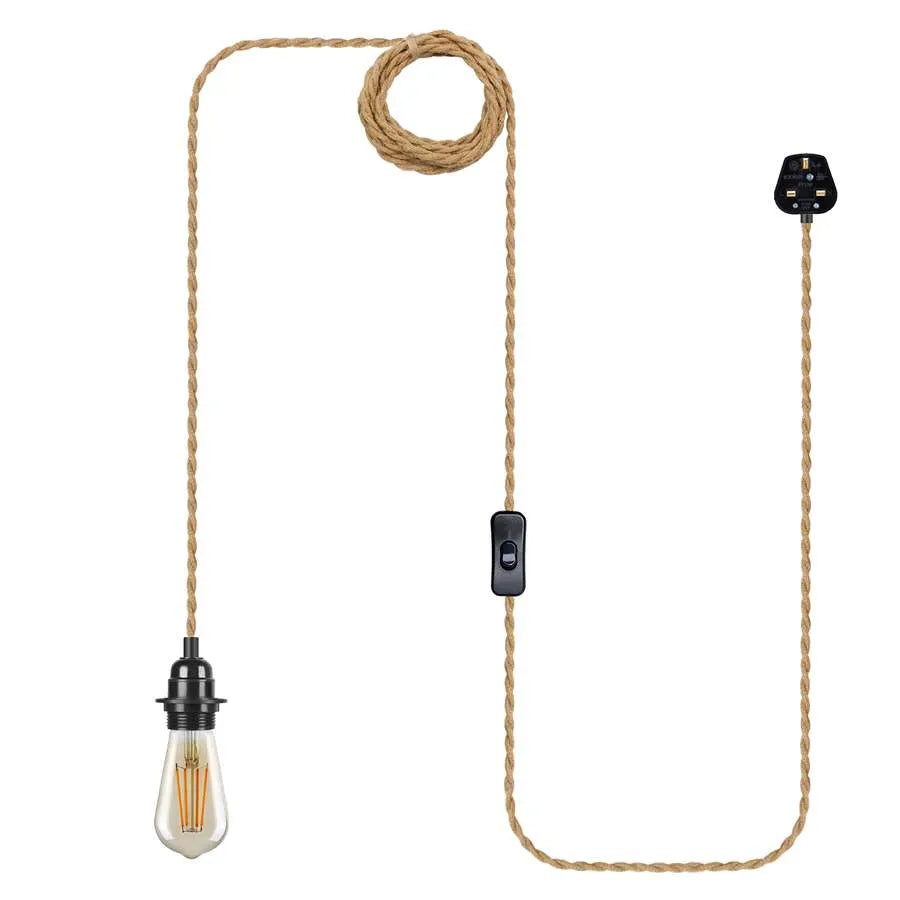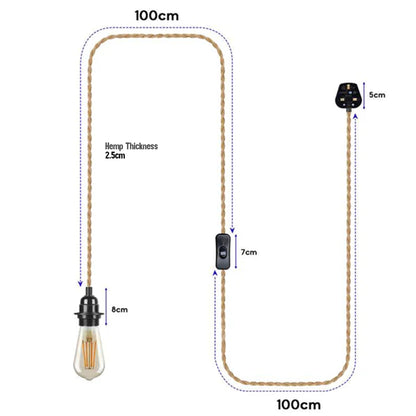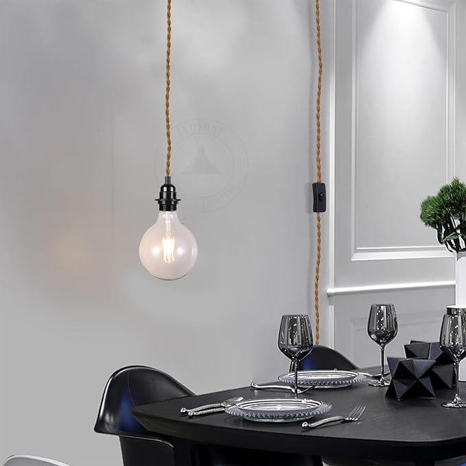 - The pendant light includes a hemp rope and simply plugs into the On/Off Switch outlet, offering flexibility in placement.
