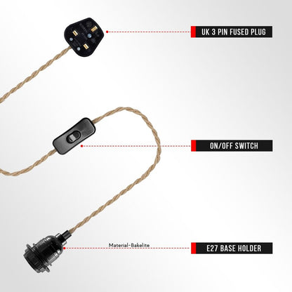 | Package Includes | - 1 x Light Holder with 2m/4.5m Cable - On/Off Switch - UK plug (Bulb is Optional) |