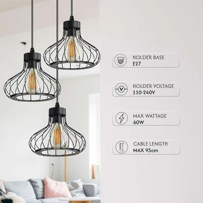 - ★ Vintage 3 Light Cluster Pendant cage lamp, suitable for retro and Vintage decoration.
