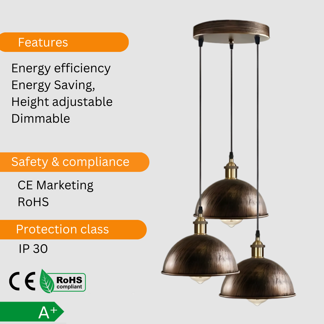 | Special features | -Height adjustable, -Dimmable (if used dimmable switch) -Energy efficient -Energy saving |