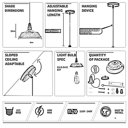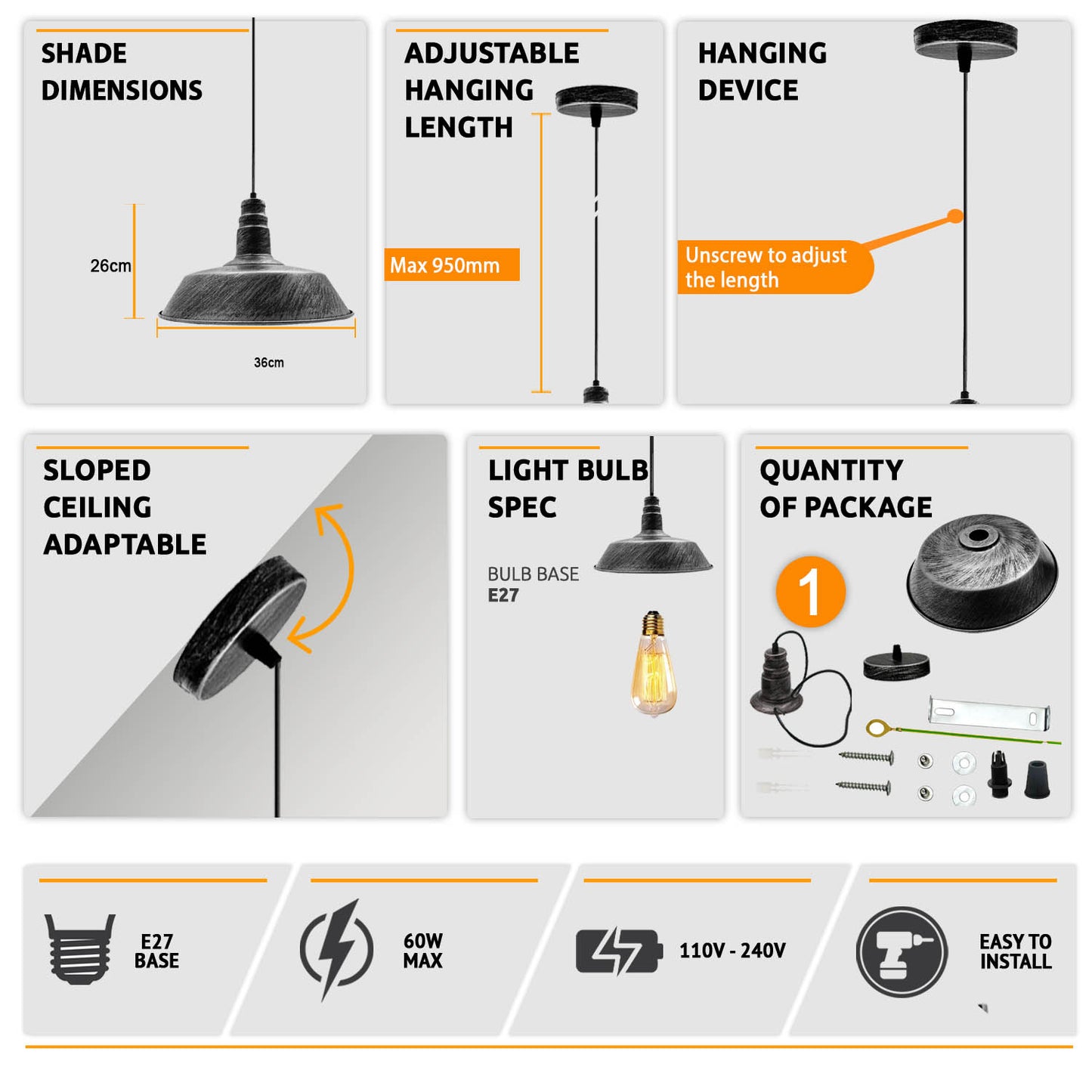 - Designed with E27 lamp base, filament retro bulbs will be a good choice to bring out the character of this fitting.